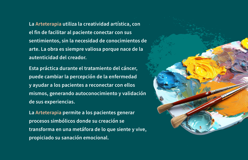 Existen terapias de apoyo o acompañamiento que permiten ayudar a los pacientes y familiares frente a estas situaciones, mejorando su bienestar emocional. Aquí es donde la Arteterapia puede ser muy beneficiosa permitiendo a los pacientes usar el lenguaje del arte y la creatividad como un canal de comunicación y expresión de sus emociones.